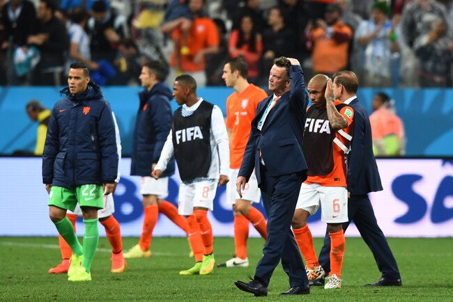 Louis Van Gaal maahiri kwa mbinu akiwa ameyong'onyea. |